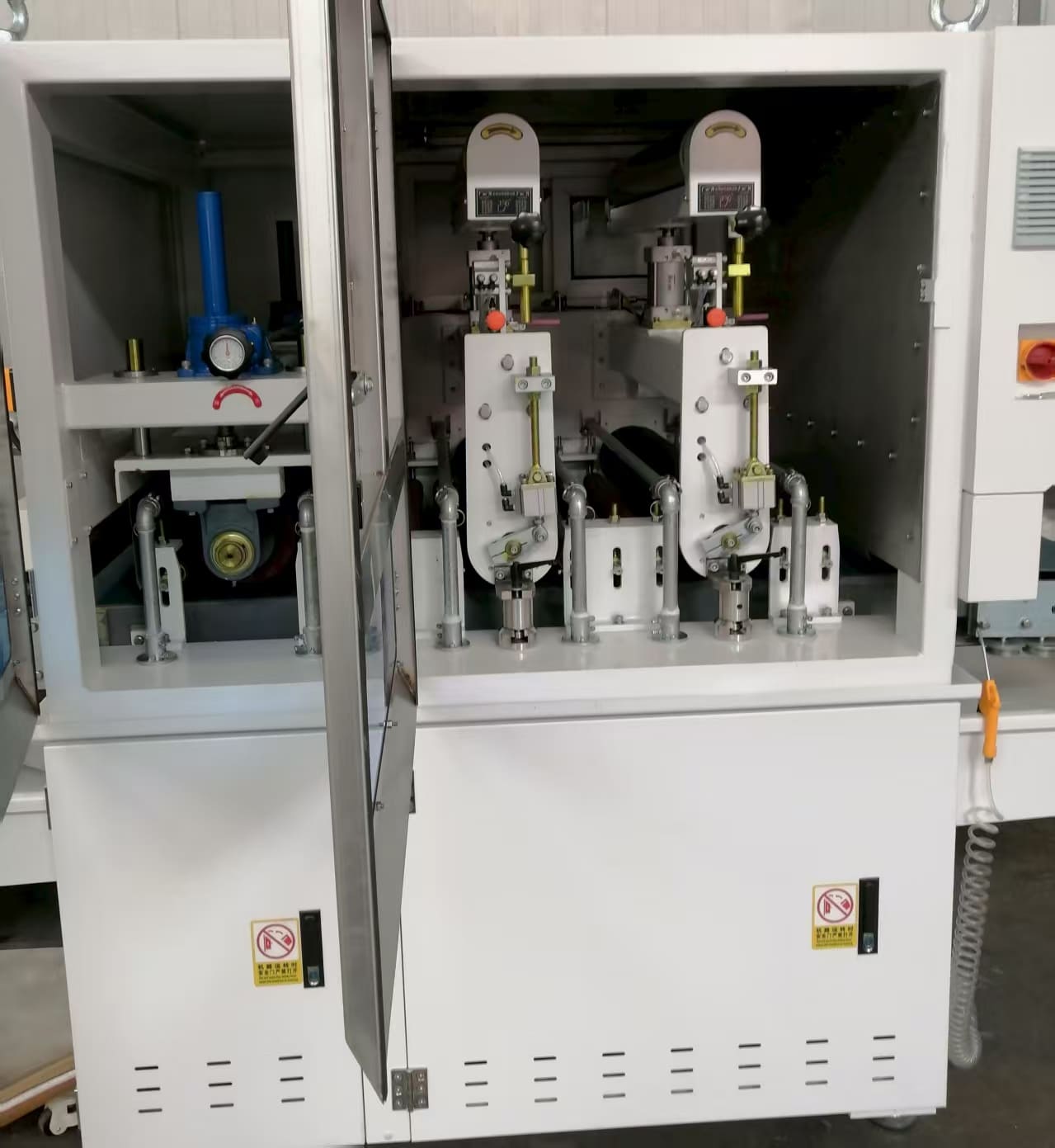 The deburring and brushing system of this machine adopts a wide-format abrasive belt structure. The belts are arranged longitudinally across the full width and utilize our patented technology for automatic belt tracking and flat surface polishing along metal edges. This allows for high-precision brushing and efficient removal of tough burrs such as those caused by punching or shearing. The abrasive belts are easy and quick to replace, ensuring smooth operation and minimal downtime.