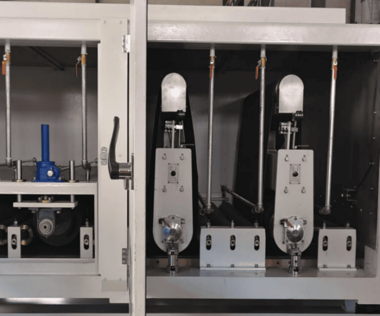 The 600WRRT is equipped with two abrasive belts and one polishing roller, providing efficient deburring and surface finishing. The wet-type design effectively reduces dust, enhances cooling performance, and ensures a safer, more stable process with superior surface quality.