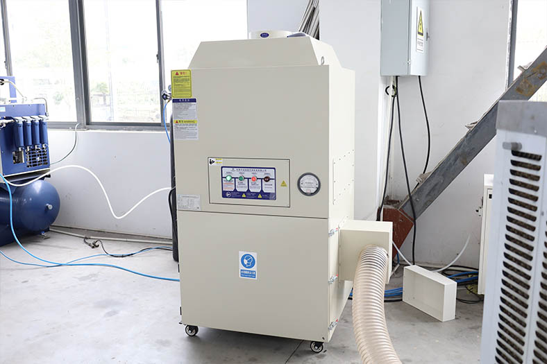 Dust collector:The dust collector, or dust and smoke purifier, is an essential component designed to capture and filter harmful particulate matter and fumes generated during laser cutting and grooving processes. By extracting pollutants directly at the source and purifying the air through a multi-stage filtration system—including features such as a spray tower—it effectively maintains workshop air quality, ensures compliance with environmental standards, and safeguards operator health by reducing exposure to hazardous airborne contaminants.