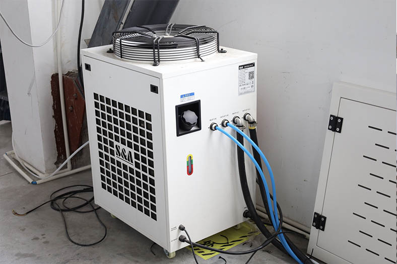 The chiller is the machine's air conditioner.It circulates cooled water to the laser source and other components to keep them from overheating. This prevents damage and ensures stable, precise operation during long working hours.